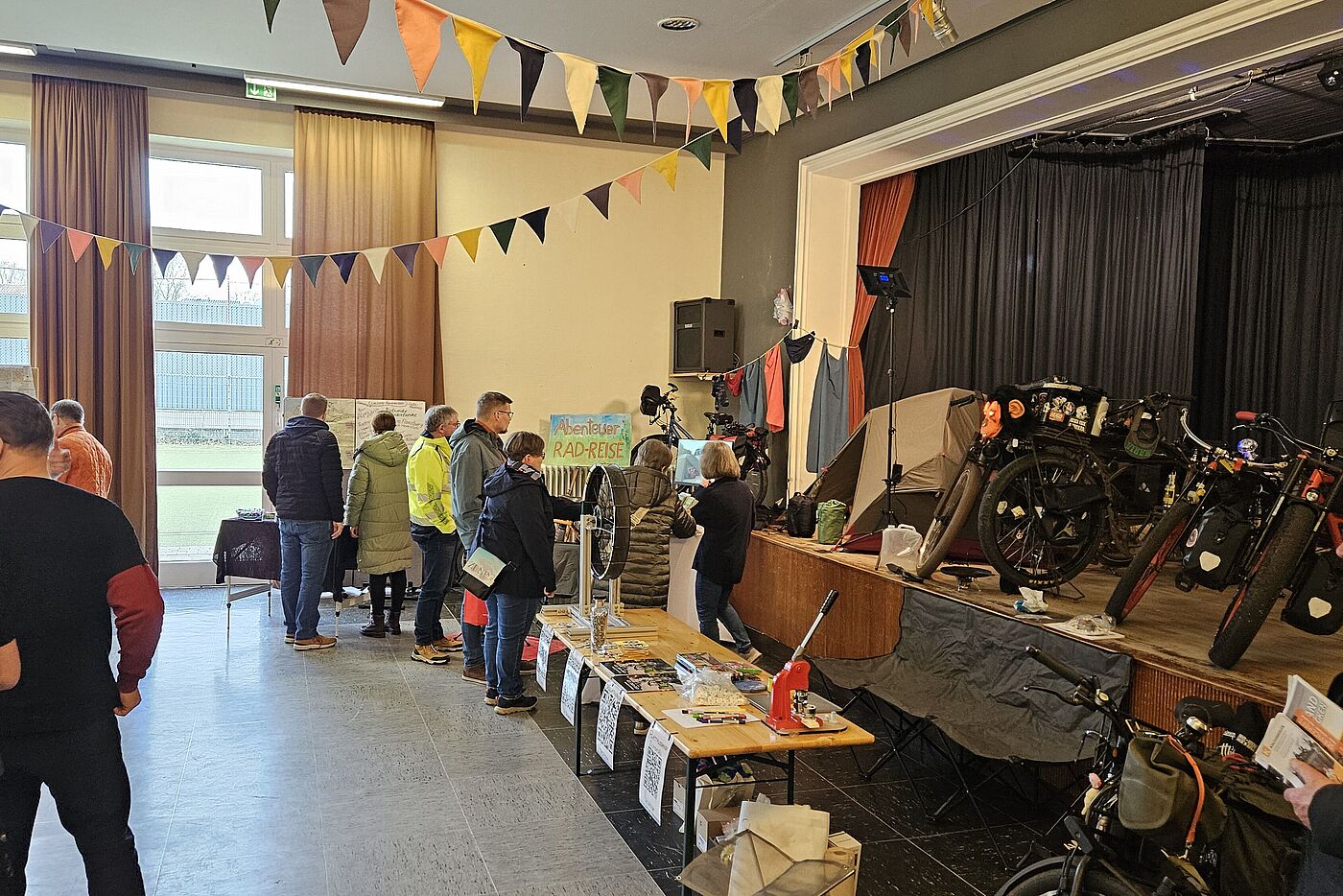 In zwei gesonderten Räumen machen verschiedene Bildervorträge über Radreisen im In- und Ausland Lust auf ein spannendes Urlaubsabenteuer, klimafreundlich, aktiv, gesund und nebenbei recht kostengünstig.